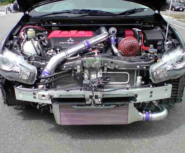 • Stock intercooler in the engine compartment, the core tends to accumulate the heat from engine and cause knocking for the starting. By putting the intercooler in front help prevent the knocking and make it unbreakable tuning.
