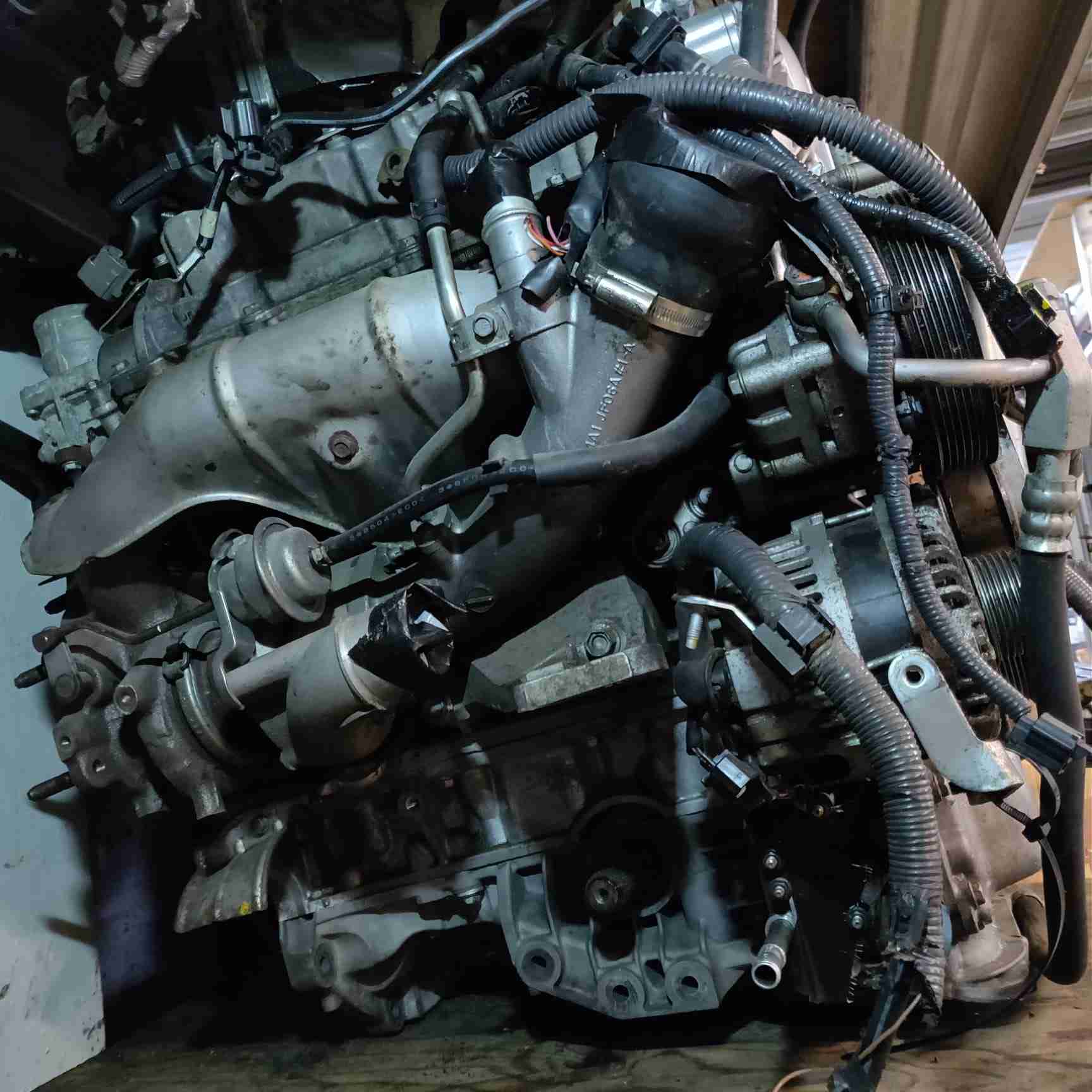 Sold with manifolds and turbo, steering pump is removed.